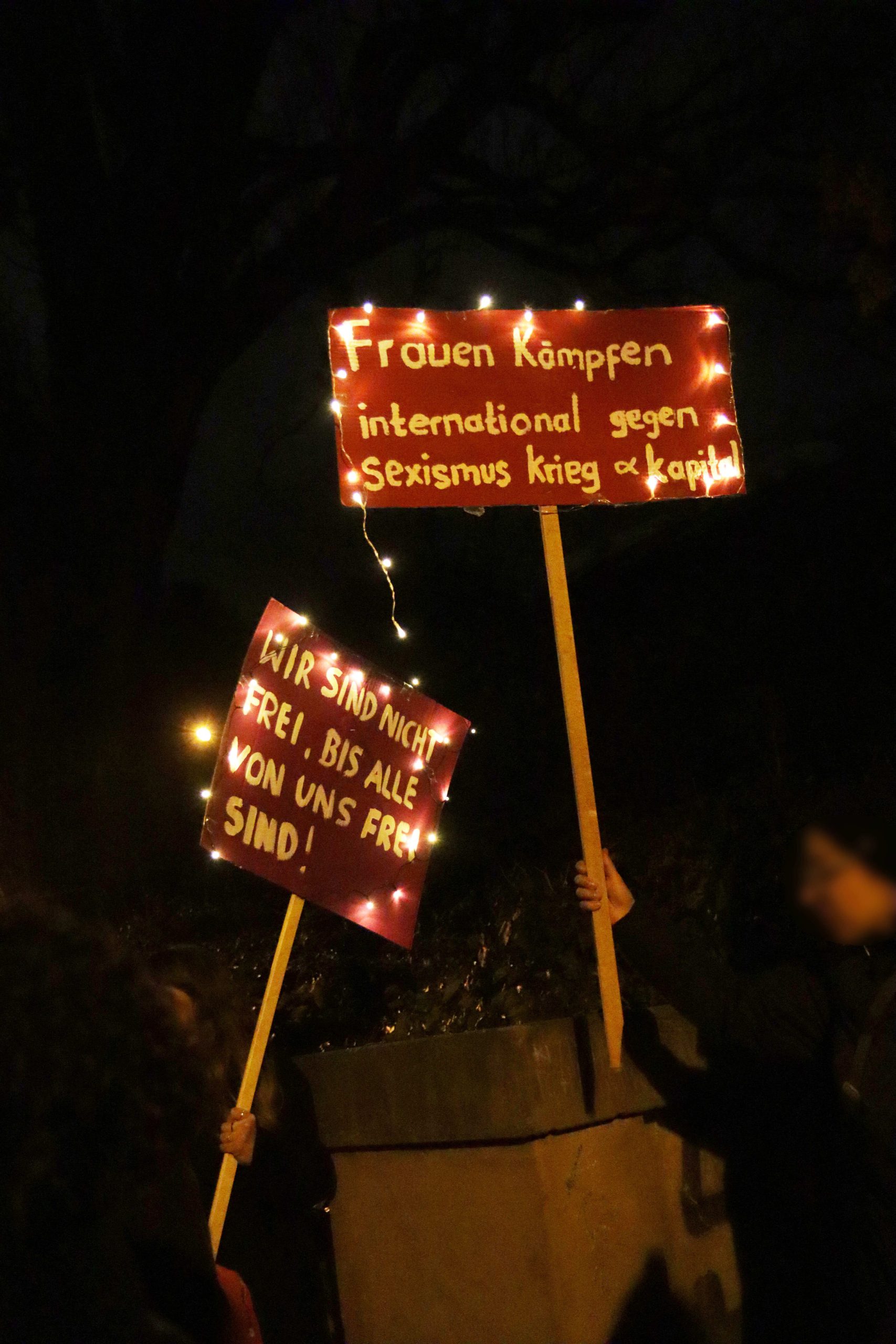 - Wir kämpfen für Selbstbestimmung und Befreiung – gegen den Backlash gesellschaftlicher Rollenbilder, die Frauen zurück an den Herd drängen wollen, jegliche Identität jenseits der binären Geschlechterordnung leugnen und körperliche Selbstbestimmung verunmöglichen.