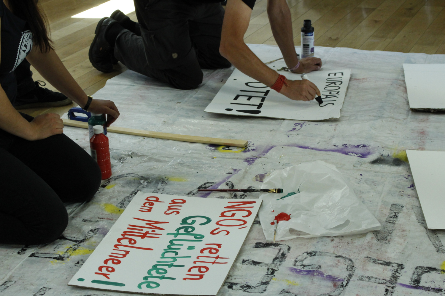 In den Workshops fand zum einen eine tiefgreifende inhaltliche Auseinandersetzung mit der jeweiligen Thematik statt, zum anderen wurden, basierend auf dem erarbeiteten Kenntnissen, Aktionen vorbereitet, die dann in der Stadt umgesetzt wurden.