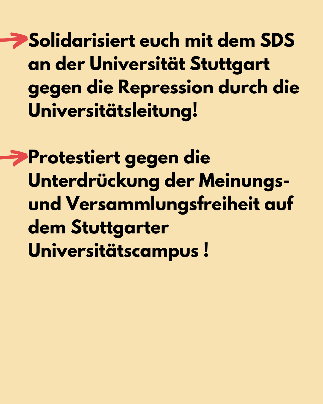 - Protestiert gegen die Unterdrückung der Meinungs- und Versammlungsfreiheit auf dem Stuttgarter Universitätscampus !