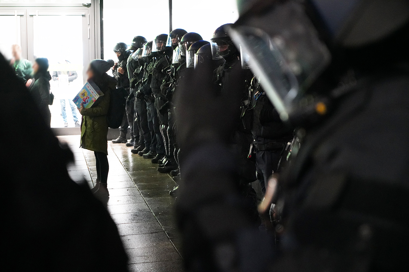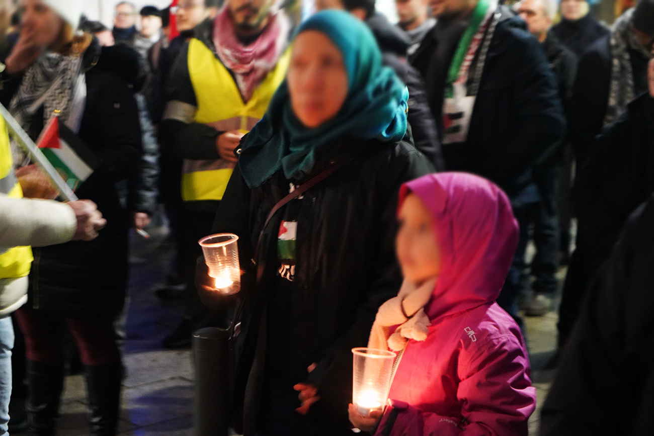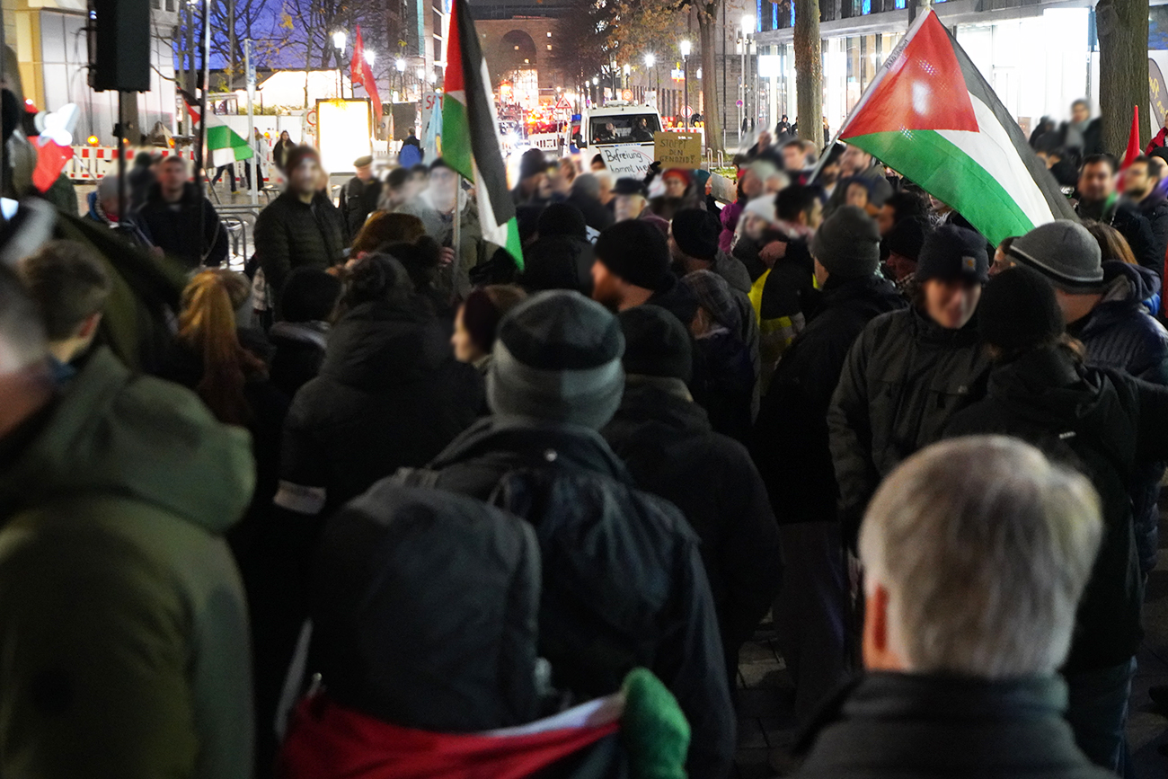 Am Freitag, den 08.12.23, fand eine Demonstration gegen den Genozid am palästinensischen Volk durch den zionistischen Apartheidstaat Israel statt. Leider konnten die Demonstrierenden keinen Meter laufen, da die Polizei die Versammlung willkürlich abgeriegelt hatte. Dies hielt die Menschen nicht davon ab, weiterhin vor Ort zu bleiben und die Stimmen der Stimmlosen zu sein. Die ca. 200 Teilnehmenden solidarisierten sich mit dem palästinensischen Volk, das seit zwei Monaten durch das israelische Militär vertrieben und massakriert wird. Der anhaltende Genozid forderte bereits über 17.000 ermordete Zivilist:innen, von denen mehr als 7000 Kinder sind, und das Morden geht weiter. Gemordet wird mit deutschen Waffen, deren Lieferung nach Israel sich seit letztem Jahr verzehnfacht haben. Deutsche Rüstungsunternehmen verdienen Milliarden durch diesen Krieg und die deutsche Polizei versucht, dieses Interesse auf den Stuttgarter Straßen durchzusetzen.